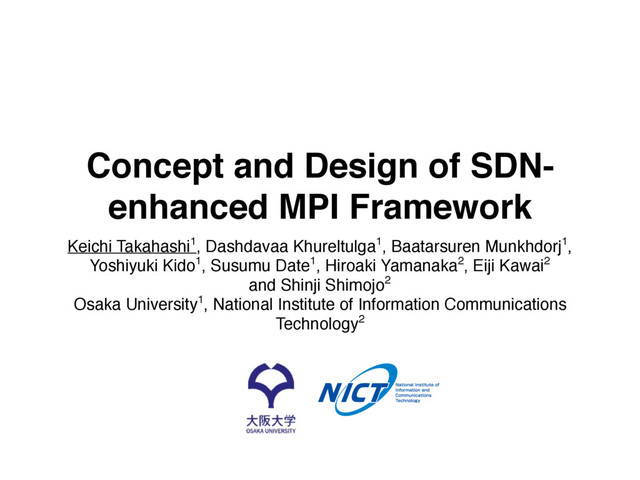 Dashdavaa Khureltulga1, Baatarsuren Munkhdorj1, Yoshiyuki Kido1, Susumu Date1, Hiroaki Yamanaka2, Eiji Kawai2 and Shinji Shimojo2 Osaka University1, National Institute of Information Communications Technology2