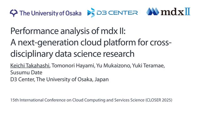 Keichi Takahashi, Tomonori Hayami, Yu Mukaizono, Yuki Teramae, Susumu Date, "Performance analysis of mdx II: A next-generation cloud platform for cross-disciplinary data science research," 15th International Conference on Cloud Computing and Services Science (CLOSER 2025), Apr. 2025.