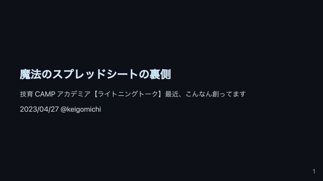魔法のスプレッドシートの裏側 技育 CAMP アカデミア【ライトニングトーク】最近、こんなん創ってます 2023/04/27 @keigomichi 1
