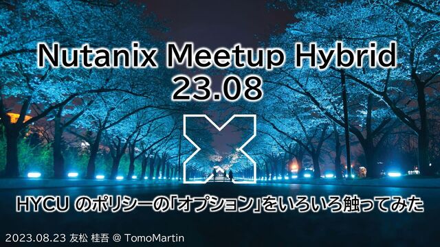 Nutanix Meetup Hybrid 23.08 HYCU のポリシーの「オプション」をいろいろ触ってみた 2023.08.23 友松 桂吾 @