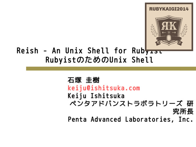 Reishのfeature Feature of Reish • Ruby開発当初のものが参考になるかも RubyArchaeology # #10 10 RubyKaigi2013 B R 2日: 言語の特徴 B R 2day: Feature of a language • オブジェ ク ト 指向言語である/obj ect ori ented l ang. • インタ ープリ タ /i nterpri ter • 手軽に使える言語/conveni ence l ang. • オペレーティ ングシステムに密着し た言語 l anguage to handl e O perati ong System • 雰囲気と し てはperl のオブジェ ク ト 指向言語版 • (shel l 風の)簡単な構文(yacc 使わない?) (shel l -l i ke) sym pl e syntax. (no use yacc?) • 単純継承/si ngl e i nheri tance • ガーベジコ レク ショ ン/garbage col l ecti on • 拡張性(Cライブラリ と 動的リ ンク か静的リ ンク できる) • U N IX, PC 双方で動作する(PC では機能制限あり ?)