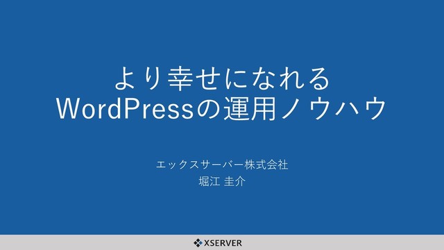 より幸せになれる WordPressの運用ノウハウ エックスサーバー株式会社 堀江 圭介