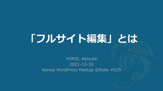 Kansai WordPress Meetup@神戸 #029 &大阪 #6 &京都#2 「サイトまるごと編集が可能になる、Full Site Editingを体験しよう!」で紹介した資料になります。 https://www.meetup.com/ja-JP/Kansai-WordPress-Meetup/events/281792029/