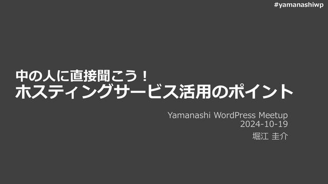 #yamanashiwp 中の人に直接聞こう! ホスティングサービス活用のポイント Yamanashi WordPress Meetup 2024-10-19 堀江 圭介