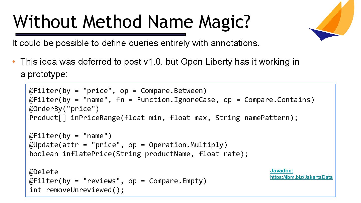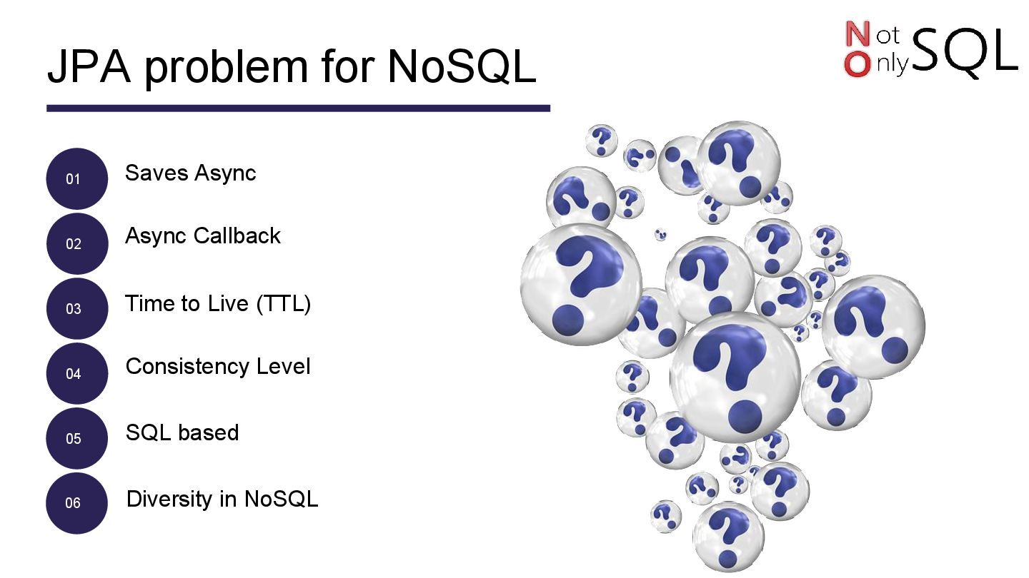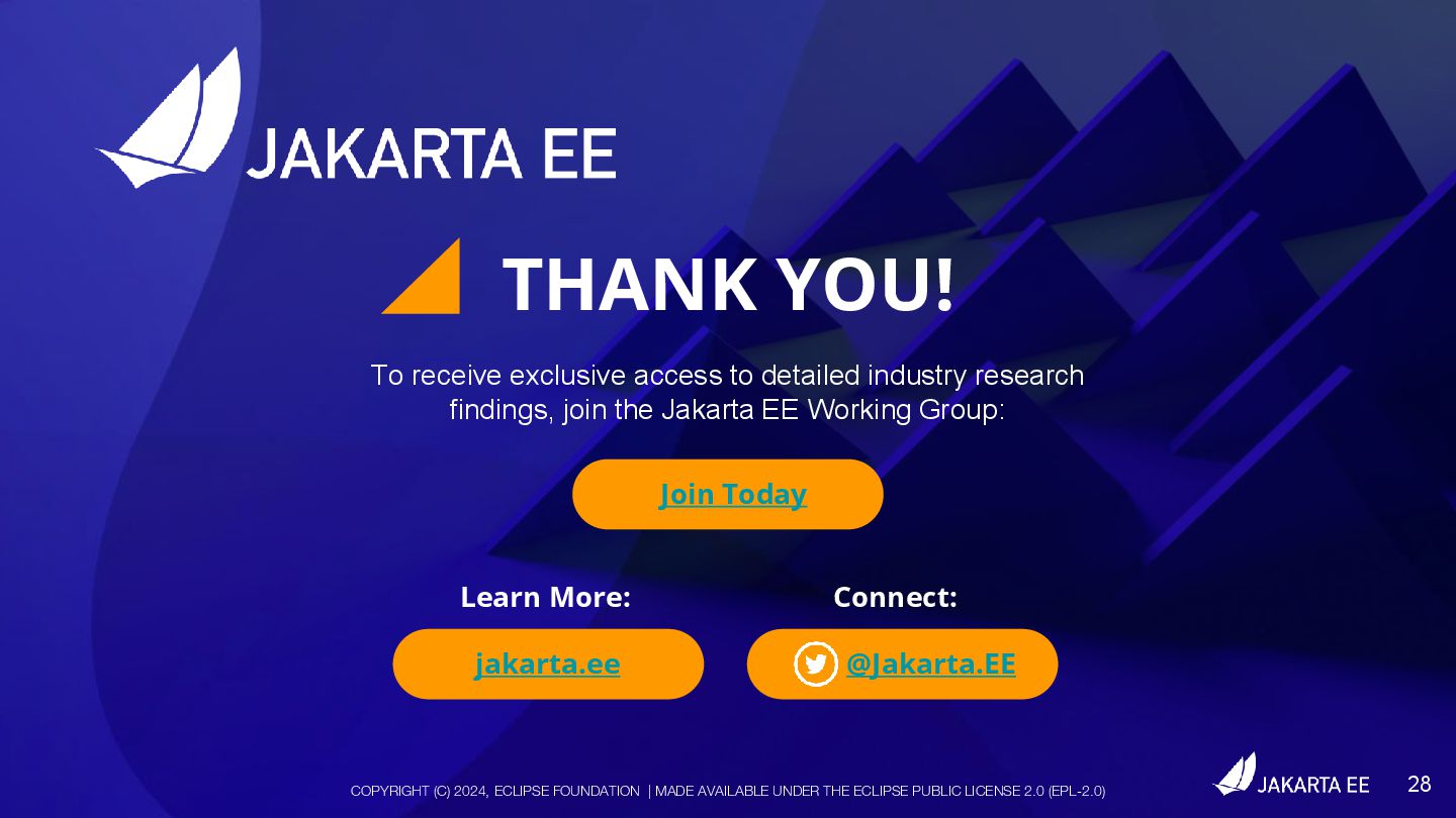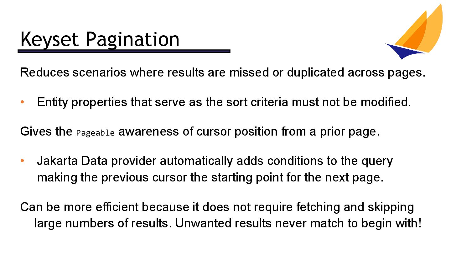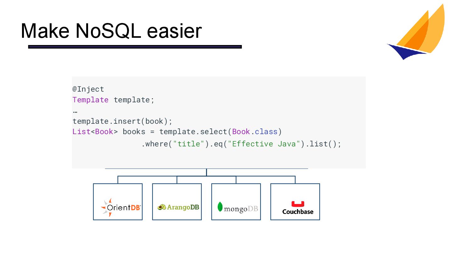 The amount of data collected by applications nowadays is growing rapidly. Many of them need to support both relational SQL and non-relational NoSQL databases. Jakarta Data provides an API to allow easy data access. Developers can split the persistence mechanism and the model using common features like the Repository pattern and seamlessly switch between SQL and NoSQL databases or even use both in the same application.