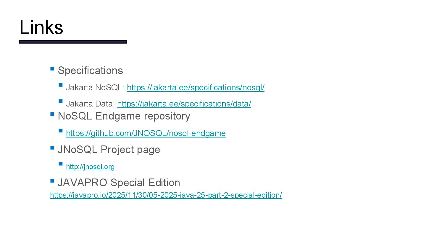 Followed by an overview of Jakarta Data and Jakarta NoSQL, the brand new specification coming with Jakarta EE 12. We'll show both with a selection of NoSQL or SQL queries to learn how they work and how they support concepts like CRUD operations, the Repository pattern, pagination or sorting. What types of databese they support best, and how they can help improve your data applications into a vendor-neutral future.