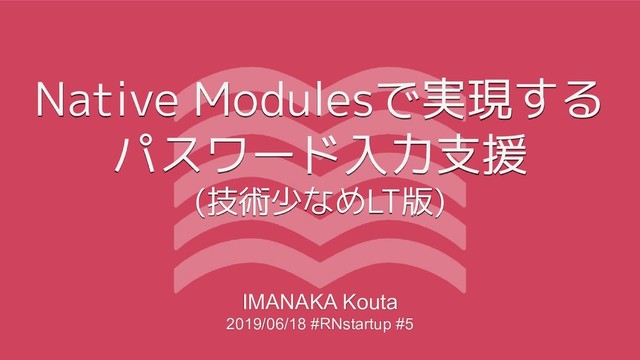 Native Modulesで実現する パスワード入力支援 (技術少なめLT版) IMANAKA Kouta 2019/06/18 #RNstartup #5