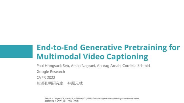 Forward Generation Present utterance ( , Input frames ) Future utterance • 複数モダリティ(音声,動画)のアライメント(エンコード)を学習 • 損失関数 ℒ𝐹𝐺 = − 𝑖=1 𝑁𝑤 log 𝑃(𝑤𝑖 |𝑤1 , … , 𝑤𝑖−1 , 𝐹, 𝑈) • 𝐹 = {𝑓1 , … , 𝑓𝑁𝑓 }:動画フレーム群 • 𝑈 = {𝑢1 , … , 𝑢𝑁𝑢 }:Present utterance • 𝑊 = {𝑤1 , … , 𝑤𝑁𝑤 }:Future utterance 対応