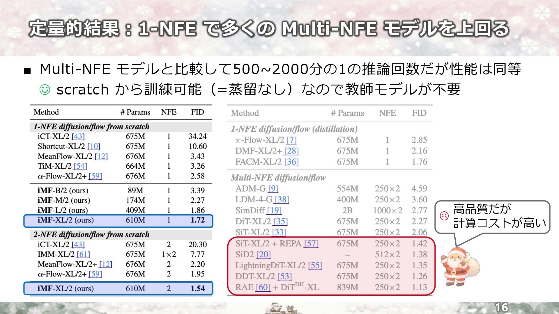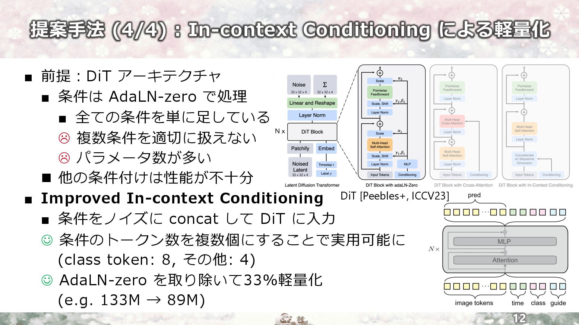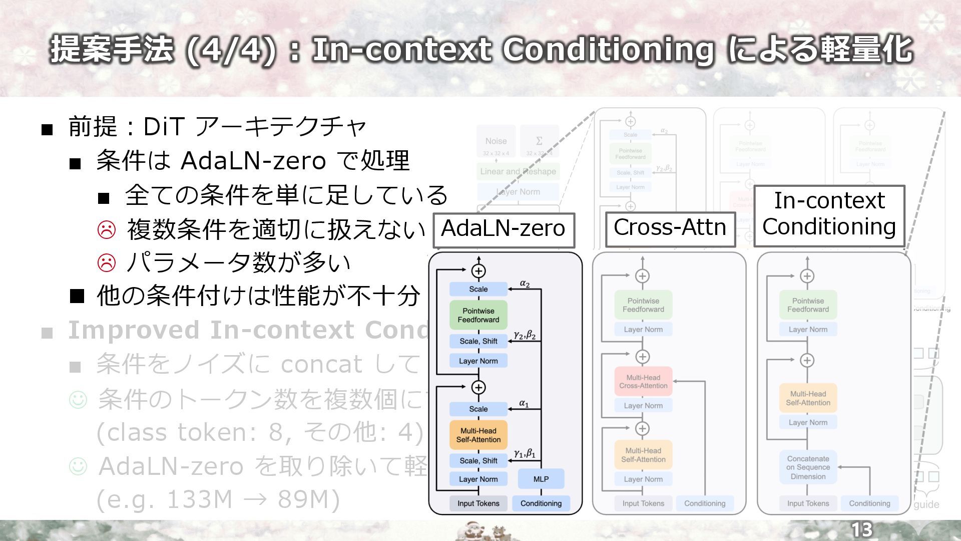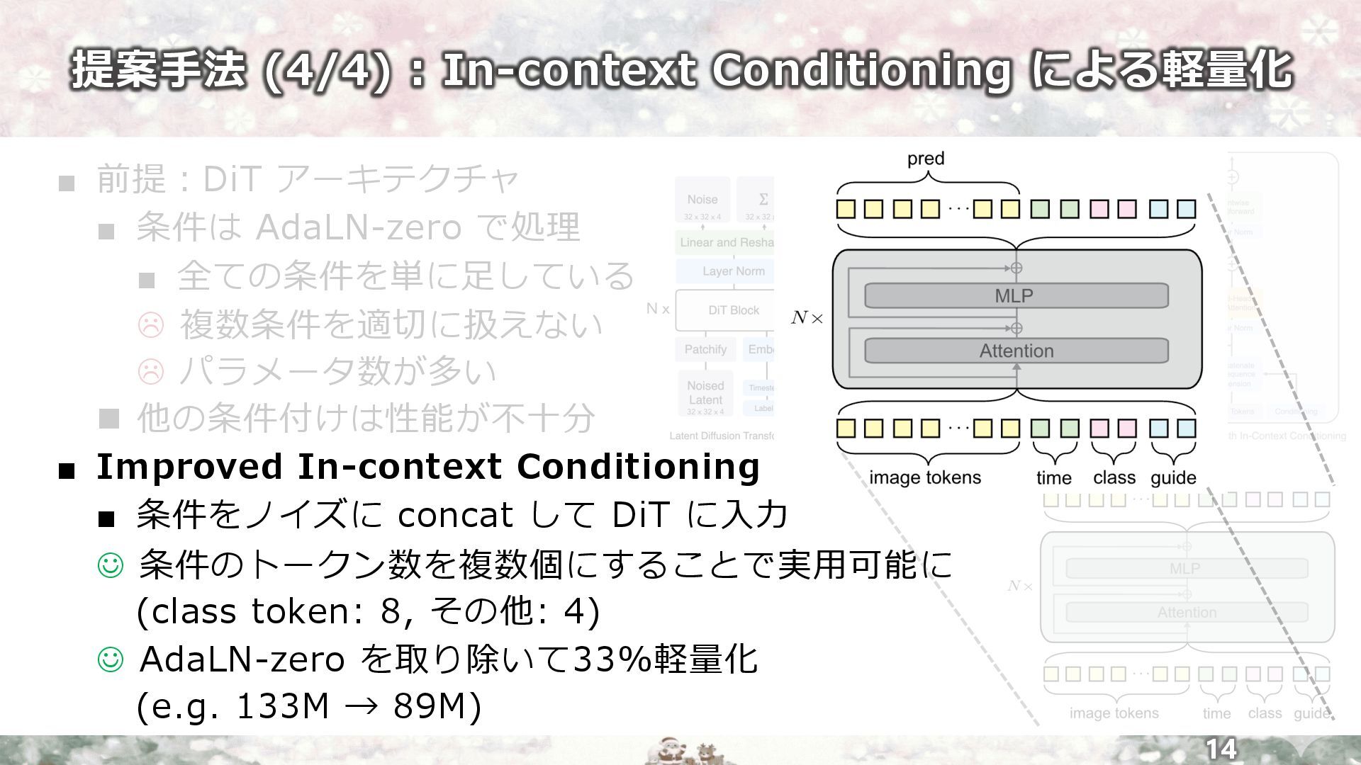 − 𝑟 𝑑 𝑑𝑡 𝑢 𝑧&, 𝑟, 𝑡 = 𝑣 𝑧& 𝑑 𝑑𝑡 𝑡 − 𝑟 𝑢 𝑧&, 𝑟, 𝑡 = 𝑑 𝑑𝑡 - ' & 𝑣 𝑧( 𝑑𝜏 𝑢 𝑧&, 𝑟, 𝑡 = 𝑣 𝑧& − 𝑡 − 𝑟 𝑑 𝑑𝑡 𝑢 𝑧&, 𝑟, 𝑡 , where 積の微分 = 𝑒 − 𝑥, 0, 1 / 𝜕# , 𝜕$ , 𝜕" 𝑢 = 𝑒 − 𝑥 / 𝜕# 𝑢 + 0 / 𝜕$ 𝑢 + 1 / 𝜕" 𝑢 J JVPを⽤いて計算可能 𝑑 𝑑𝑡 𝑢 𝑧" , 𝑟, 𝑡 = 𝑑𝑧" 𝑑𝑡 𝜕# 𝑢 + 𝑑𝑟 𝑑𝑡 𝜕$ 𝑢 + 𝑑𝑡 𝑑𝑡 𝜕" 𝑢 ⟹ ⟹ ⟹ ∴ L 問題① 𝑧" 𝑥 𝑒 𝑡 − 𝑟 を掛けた後,𝑡 で微分 𝒗 𝒛𝒕 𝒆 − 𝒙 L 問題② L Marginal Velocity を Conditional Velocity で近似