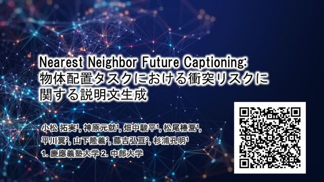 危険性の説明文 L 説明文生成時には,ユーザに判断を仰ぐ 時間的余裕が残っていない 5 ・・・ 入力 t-k t RFCM The robot hits the plastid bottle because the robot tried to put a red bottle on it. 出力 説明文生成時は 衝突の直前