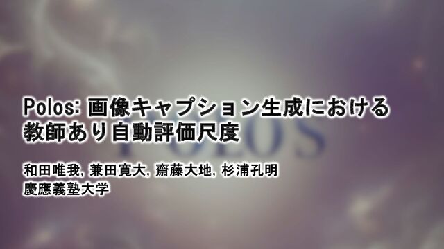 A.: METEOR: An Automatic Metric for MT Evaluation with Improved Correlation with Human Judgments, in IEEvaluation@ACL, pp. 65–72 (2005) 2. [Vedantam+, CVPR15] Vedantam, R., Zitnick, L., and Parikh, D.: CIDEr: Consensus-based Image Description Evaluation, in CVPR, pp. 4566–4575 (2015) 3. [Anderson+, ECCV16] Anderson, P., Fernando, B., et al.: SPICE: Se- mantic Propositional Image Caption Evaluation, in ECCV, pp. 382–398 (2016) 4. [Wada+, CoNLL23] Wada, Y., Kaneda, K., and Sugiura, K.: JaSPICE: Automatic Evaluation Metric Using Predicate-Argument Structures for Image Captioning Models, in CoNLL (2023) 5. [Zhang+, ICLR20] Zhang, T., Kishore, V., Wu, F., Weinberger, K. Q., and Artzi, Y.: BERTScore: Evaluating Text Generation with BERT, in ICLR (2020) 6. [Devlin+, NACCL19] Devlin, J., et al.: BERT: Pre-training of Deep Bidirectional Transformers for Language Understanding, NAACL- HLT, pp. 4171–4186 (2019) 7. [Hessel+, EMNLP21] Hessel, J., et al.: CLIPScore: A Reference-free Evaluation Metric for Image Captioning, in EMNLP, pp. 7514–7528 (2021) 8. [Kim+, NeurIPS22] Kim, J.-H., Kim, Y., Lee, J., Yoo, K. M., and Lee, S.- W.: Mutual information divergence: A unified metric for multimodal generative models, NeurIPS, Vol. 35, pp. 35072–35086 (2022) 9. [Lee+, ACL21] Lee, H., Yoon, S., Dernoncourt, F., and Jung, K.: UMIC: An Unreferenced Metric for Image Captioning via Con- trastive Learning, in ACL, pp. 220–226 (2021) 10. [Sarto+, CVPR23] Sarto, S., Barraco, M., Cornia, M., Baraldi, L., and Cucchiara, R.: Positive-Augmented Contrastive Learning for Image and Video Captioning Evaluation, in CVPR, pp. 6914– 6924 (2023) 11. [Chen+, ECCV20] Chen, Y.-C., Li, L., Yu, L., El Kholy, A., Ahmed, F., Gan, Z., Cheng, Y., and Liu, J.: UNITER: Universal image-text representation learning, in ECCV, pp. 104–120 (2020) 12. [Radford+, PMLR21] Radford, A., Kim, J. W., Hallacy, C., et al.: Learning transferable visual models from natural language supervi- sion, in ICML, pp. 8748–8763 (2021) 13. [Gao+, EMNLP21] Tianyu Gao, Xingcheng Yao, and Danqi Chen. SimCSE: Simple Contrastive Learning of Sentence Embeddings. In 737 EMNLP, pages 6894–6910, 2021. 14. [Rei+, EMNLP20] Rei, R., Stewart, C., Farinha, A. C., and Lavie, A.: COMET: A Neural Framework for MT Evaluation, in EMNLP, pp. 2685–2702 (2020) 15. [Sellam+, ACL20] Sellam, T., Das, D., and Parikh, A.: BLEURT: Learning Robust Metrics for Text Generation, in ACL, pp. 7881–7892 (2020) 参考⽂献