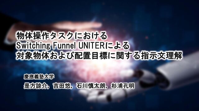 , 𝒙dest , 𝒙det :Faster R-CNN [Ren+, PAMI16] から抽出した領域の特徴量 – 𝒙targloc , 𝒙destloc , 𝒙detloc :矩形領域の位置に関する特徴量 7 不要な入力を0埋めして条件付け(𝒙targloc , 𝒙destloc も同様) 𝒙targ , 𝒙dest = ൝ (𝒙targ , 𝟎) if target mode (𝟎, 𝒙dest ) if destination mode 各モードの対象ではない入力は不使用 𝒙det ,𝒙detloc :周囲の物体および配置先の特徴量