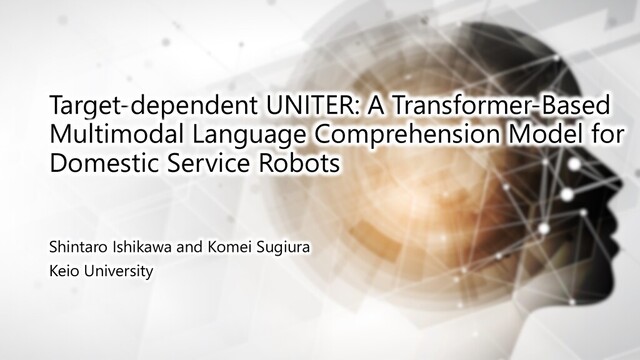 : One-hot vector set representing each token of instruction We tokenize instruction using WordPiece [Wu 16] and convert it into token sequence e.g.) “Pick up the empty bottle on the shelf” -> [“Pick”, “up”, “the”, ”empty”, ”bottle”, “on”, “the”, “shelf”, “.”] • 𝑥%&# : One-hot vector set representing each token’s position of instruction