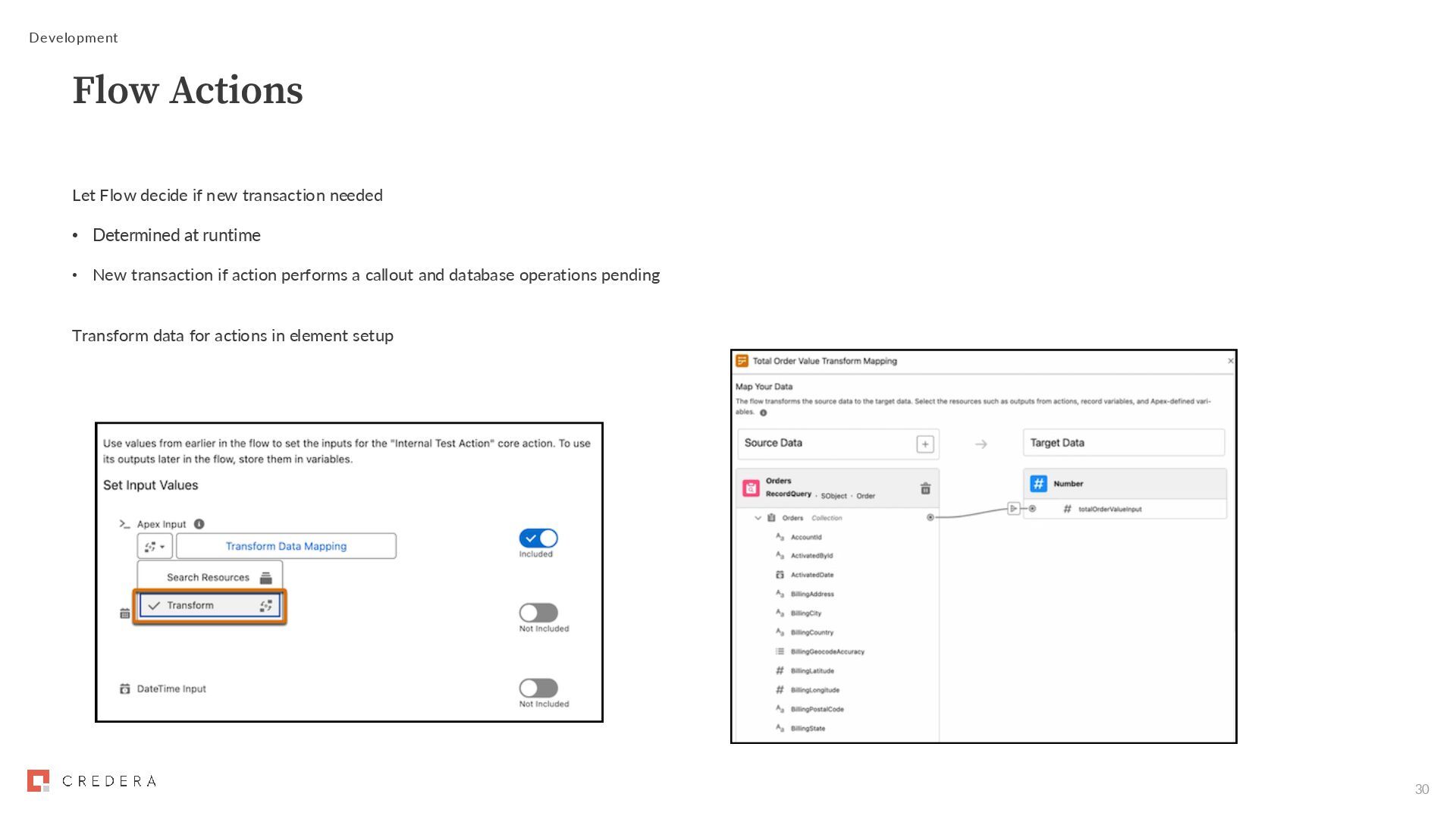 needed • Determined at runtime • New transaction if action performs a callout and database operations pending Transform data for actions in element setup