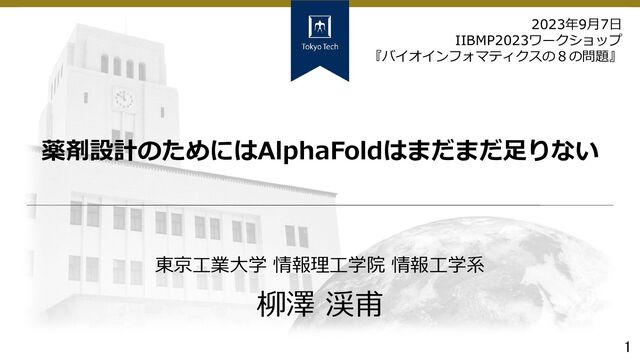 イオン化状態 等の生成 化合物DBの 選択・生成 分子動力学 (MD) 法 による化合物の選抜 O N N HN F Cl O N O HO S O O F O HN N F F F 薬剤候補化合物群 NH+ HN R HN N R タンパク質 立体構造の準備 構造ベース創薬の「未解決問題」のマップ 柳澤渓甫. タンパク質立体構造情報を用いた薬剤バーチャルスクリーニング. JSBi Bioinformatics Review 2(1): 76-86, 2021. タンパク質立体構造の 高精度な予測 結合ポーズ・結合親和性の 高速・高精度な推定 後の薬剤設計しやすさを 考慮した標的タンパク質選択 合成可能・容易な 薬剤候補化合物の 生成モデルの開発 化合物の体内動態 (毒性を含む)の推定 タンパク質 立体構造関係 化合物 関係
