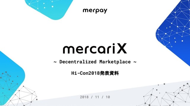 ~ Decentralized Marketplace ~ Hi-Con2018発表資料 2018 / 11 / 10