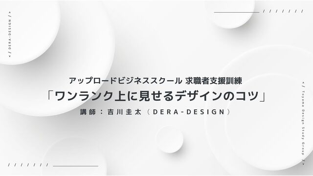 R A - D E S I G N ) アップロードビジネススクール 求職者支援訓練 「ワンランク上に見せるデザインのコツ」 D E R A - D E S I G N T o y a m a D e s i g n S t u d y G r o u p