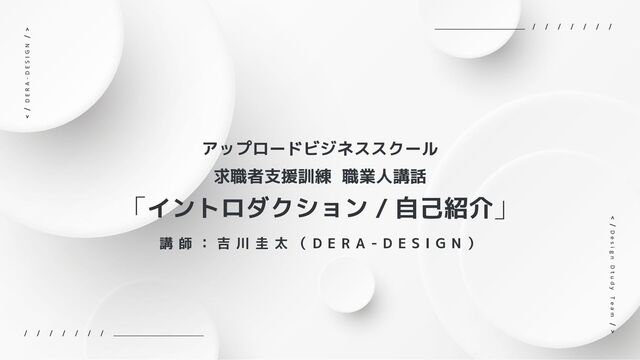R A - D E S I G N ) アップロードビジネススクール 求職者支援訓練 職業人講話 「イントロダクション / 自己紹介」 D E R A - D E S I G N D e s i g n D t u d y T e a m