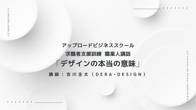 R A - D E S I G N ) アップロードビジネススクール 求職者支援訓練 職業人講話 「デザインの本当の意味」 D E R A - D E S I G N T a k a o k a 4 D P o c k e t 2 0 2 3 1 0 1 8