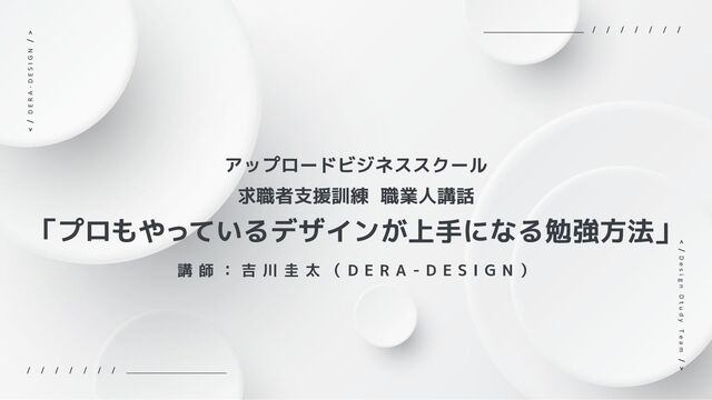 R A - D E S I G N ) アップロードビジネススクール 求職者支援訓練 職業人講話 「プロもやっているデザインが上手になる勉強方法」 D E R A - D E S I G N D e s i g n D t u d y T e a m