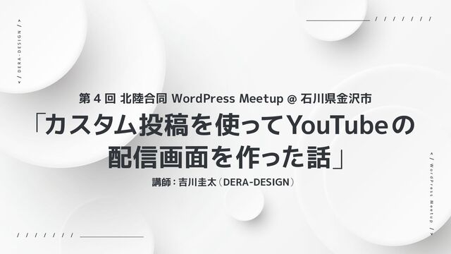 「カスタム投稿を使ってYouTubeの 配信画面を作った話」 D E R A - D E S I G N W o r d P r e s s M e e t u p