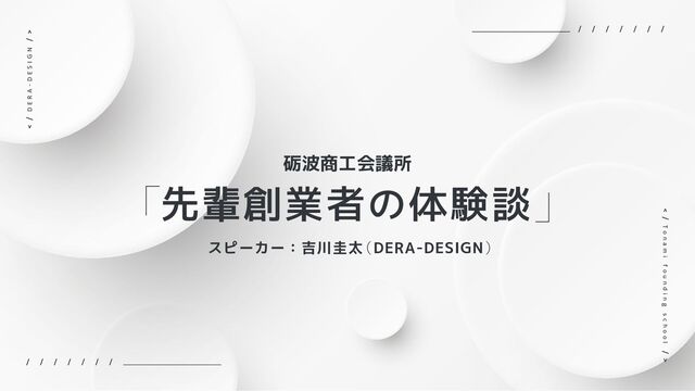 砺波商工会議所 「先輩創業者の体験談」 スピーカーɿ吉川圭太 (DERA-DESIGN) D E R A - D