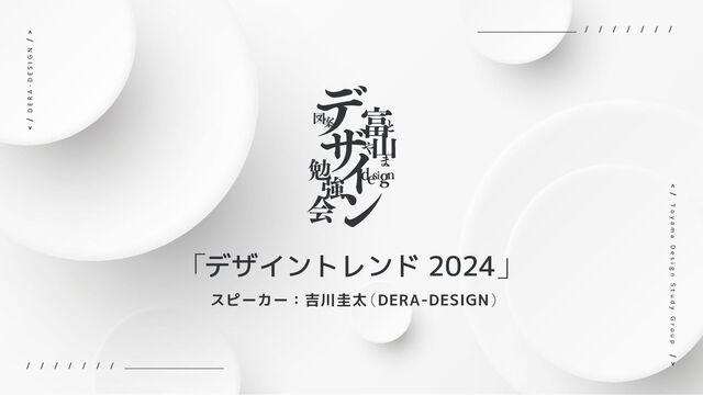 【2024年】Webデザインのトレンド・参考サイトまとめ https://qiita.com/kazuki_tachikawa/items/5a04de1174d30e7b5c0e • [2024年版] Webデザイン・UIデザインの注目最新トレンド36選! https://brik.co.jp/tips/438 • 2024年大きく注目予想されている8つのWEBデザイントレンド https://lollypop.design/blog/2024/january/2024年大きく注目予想されている8つのwebデザイントレ/ 参考紹介・出典 D E R A - D E S I G N T o y a m a D e s i g n S t u d y G r o u p