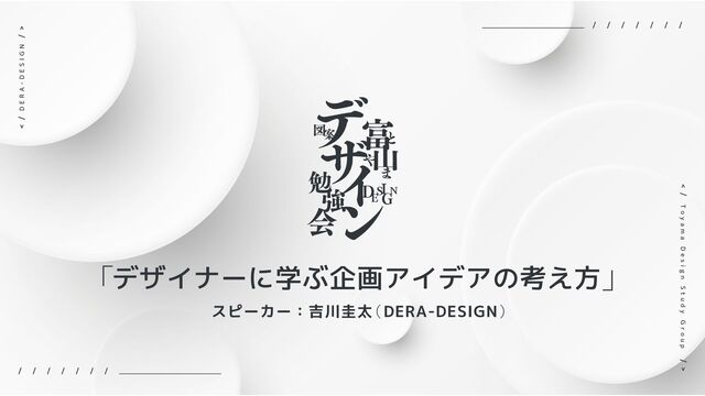 ◦ 物事の文脈を踏まえていない ◦ 根拠がない ◦ 具体的な施策につながらない ◦ 問題を解決することができない ◦ 理由のない自信がある ◦ 物事の文脈を踏まえている ◦ 理由を説明できるだけの根拠がある ◦ 目的に向かう具体的な施策がある ◦ 問題を解決する現実的なビジョン ◦ その方法が正しいか検証し続ける 「アイデア 」 の特徴 「思いつき」 の特徴 『Designers MARUKINAD 「思いつき」を「アイデア」だと勘違いしてはいけない!』より https://www.marukin-ad.co.jp/marulog/?p=1751 D E R A - D E S I G N T o y a m a D e s i g n S t u d y G r o u p