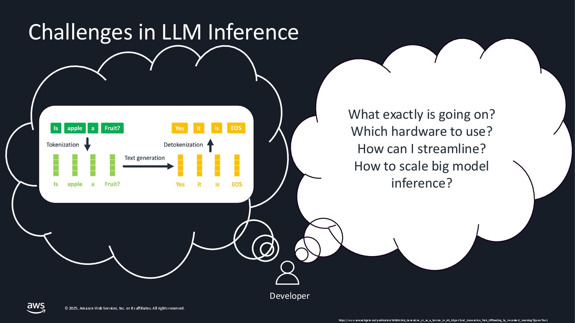 rights reserved. Challenges in LLM Inference What exactly is going on? Which hardware to use? How can I streamline? How to scale big model inference? Developer https://www.researchgate.net/publication/382884366_Generative_AI_as_a_Service_in_6G_Edge-Cloud_Generation_Task_Offloading_by_In-context_Learning/figures?lo=1