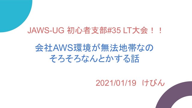 JAWS-UG 初心者支部#35 LT大会!! 会社AWS環境が無法地帯なの そろそろなんとかする話 2021/01/19 けびん