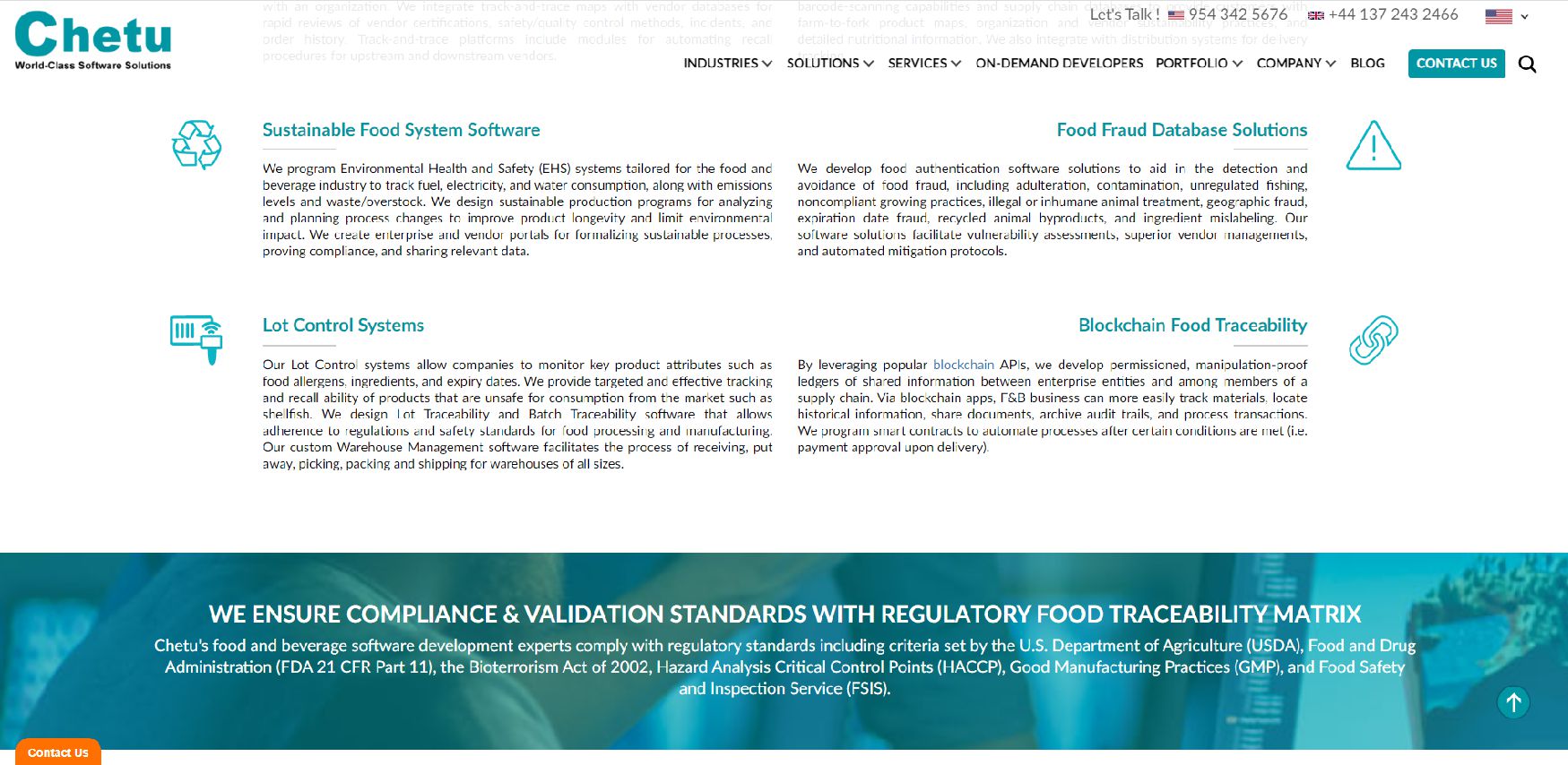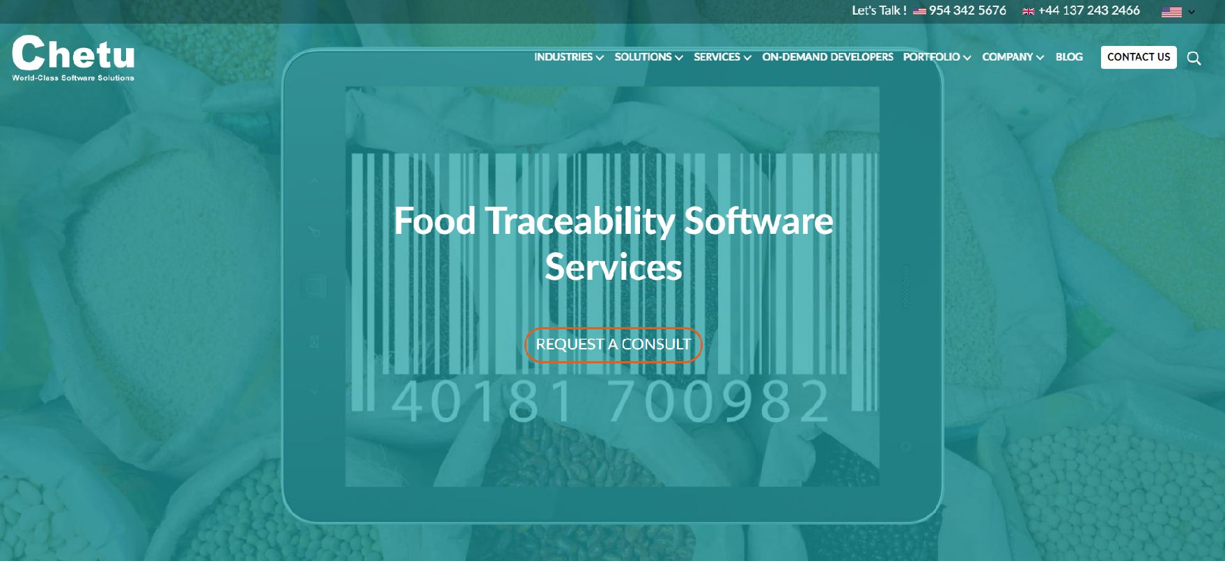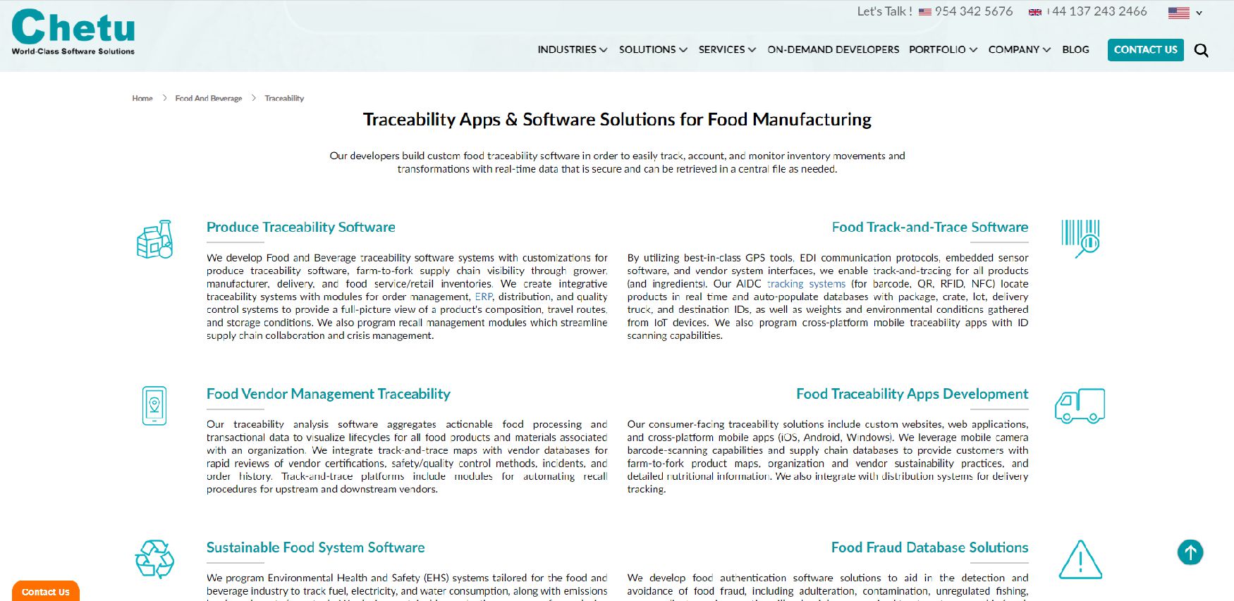 Our custom food traceability software integrates food processing and transactional data to visualize product lifecycles for food vendor management.