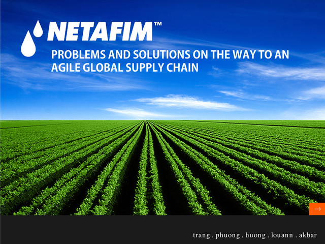 Case presentation on Netafim, prepared by Muhammad Akbar Bin Mohd Yunus, Pham Minh Trang, Pham Thi Thu Huong, Pham Ngoc Ha Phuong and Louann Yeo. Uploaded with kind permissions from the abovementioned authors. I do not claim to own any rights to the document.