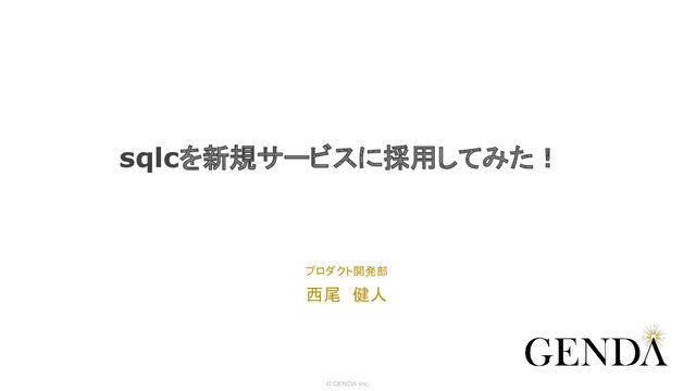 © GENDA Inc. sqlcを新規サービスに採用してみた! プロダクト開発部 西尾 健人