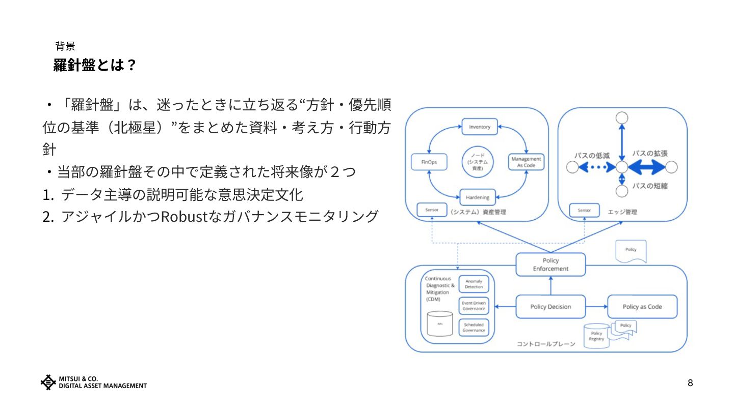6. 背景 Policy as Code、本当に正しいアプローチか? ▪OPA(Open Policy Agent)などのツールで、ルールをコードに落とし込みバージョン管理する ネックは実現性と持続可能性 ‧ルールが変わるたびにコードを書き直すのか? ‧例外や曖昧な判断をどうコードに落とすのか?