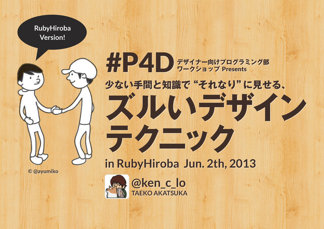 https://speakerdeck.com/ken_c_lo/rubyistfalsetamefalsezuruidezainhanzuon-in-rubyhiroba-p4d-wakusiyotupu