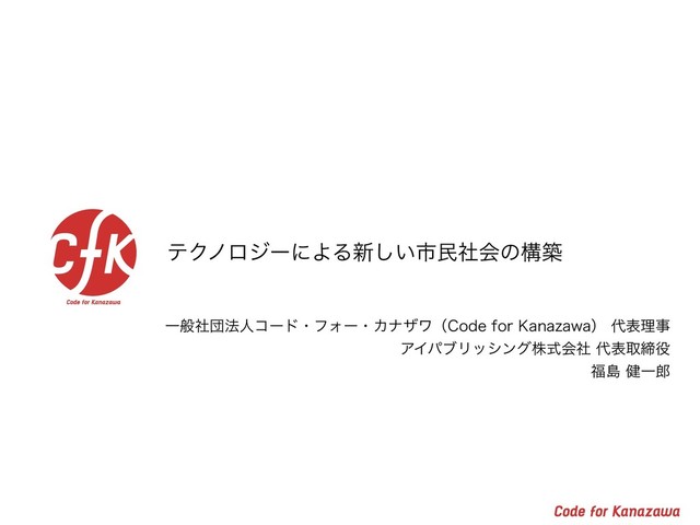 ςΫϊϩδʔʹΑΔ৽͍͠ࢢຽࣾձͷߏங Ұൠࣾஂ๏ਓίʔυɾϑΥʔɾΧφβϫʢ$PEFGPS,BOB[BXBʣදཧࣄ ΞΠύϒϦογϯάגࣜձࣾදऔక ౡ݈Ұ