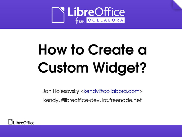 place! :-) • Always try to use what is already existing • Standard widgets set – ideally what is available via glade for the .ui creation • But unfortunately sometimes it makes sense • More convenient than the stock ones • Special functionality – like the Start Center document previews