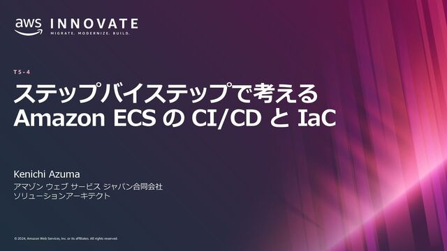 2024年に開催された AWS Innovate Migrate. Modernize. Build の登壇資料です。 2025年のアップデート内容については盛り込まれていないため、例えばECSのNative B/Gの内容であったり、Express Modeなどのお話しは含まれておりません。