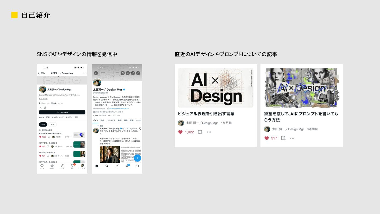 自己紹介 SNSでAIやデザインの情報を発信中 直近のAIデザインやプロンプトについての記事