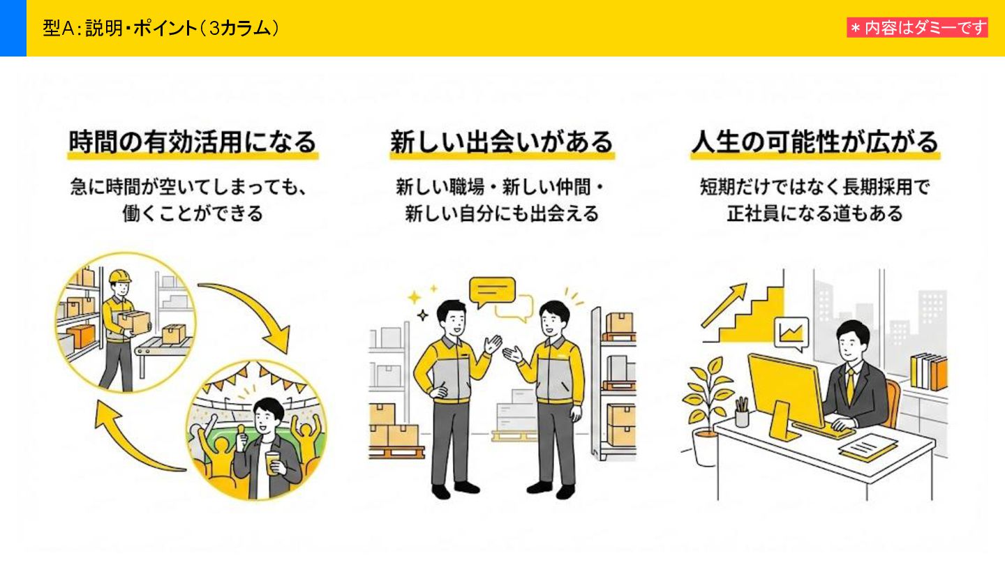型A:説明・ポイント(3カラム) *内容はダミーです