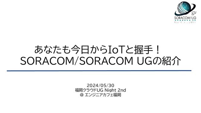 あなたも今日からIoTと握手! SORACOM/SORACOM UGの紹介 2024/05/30 福岡クラウドUG Night 2nd @ エンジニアカフェ福岡