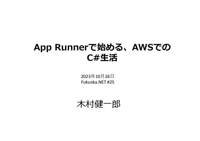 C#生活 木村健一郎 2023年10月26日 Fukuoka.NET #25