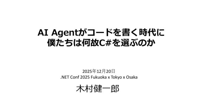 2025/12/20に開催された「.NET Conf 2025 Fukuoka x Tokyo x Osaka」でのLT登壇資料です。