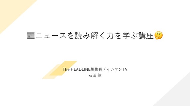 ニュースを読み解く⼒を学ぶ講座 The HEADLINE編集⻑ / イシケンTV ⽯⽥ 健