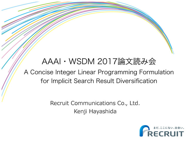 """*ɾ84%.จಡΈձ "$PODJTF*OUFHFS-JOFBS1SPHSBNNJOH'PSNVMBUJPO GPS*NQMJDJU4FBSDI3FTVMU%JWFSTJpDBUJPO Recruit Communications Co., Ltd. Kenji Hayashida