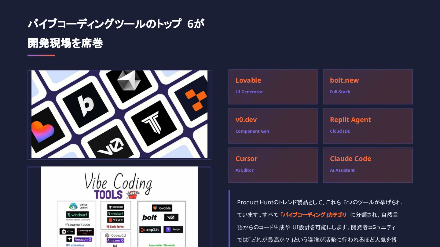 ・バイブコーディングツールのトップ6が開発現場を席巻