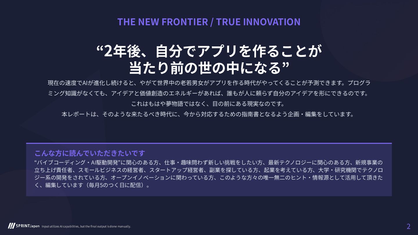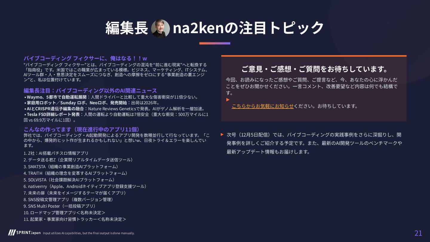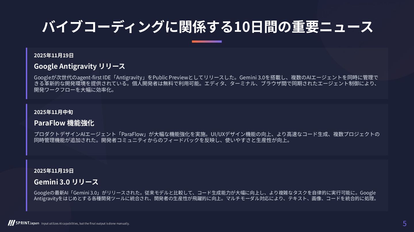 バイブコーディングとAI駆動開発の最新動向を速読できるレポート「テックトレンド速報 #4 11月25日号」を公開致しました。
