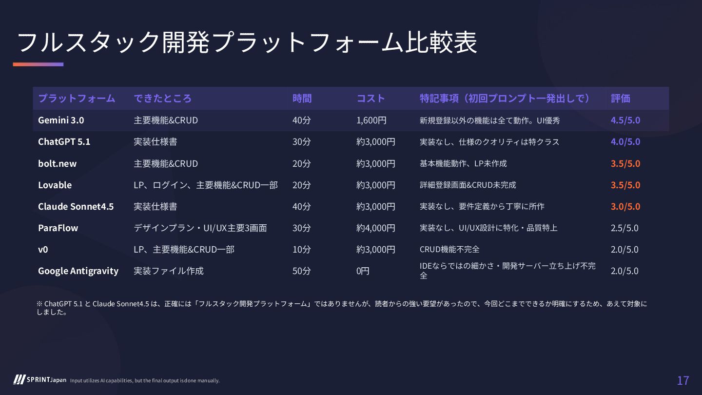 ▼最新8バイブコーディングプラットフォームにてベンチマークを行いました。