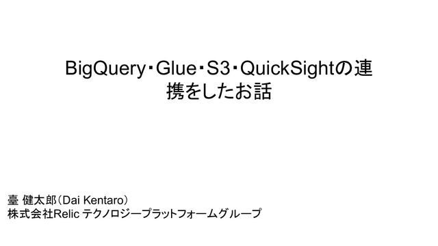 臺 健太郎(Dai Kentaro) 株式会社Relic テクノロジープラットフォームグループ BigQuery・Glue・S3・QuickSightの連 携をしたお話