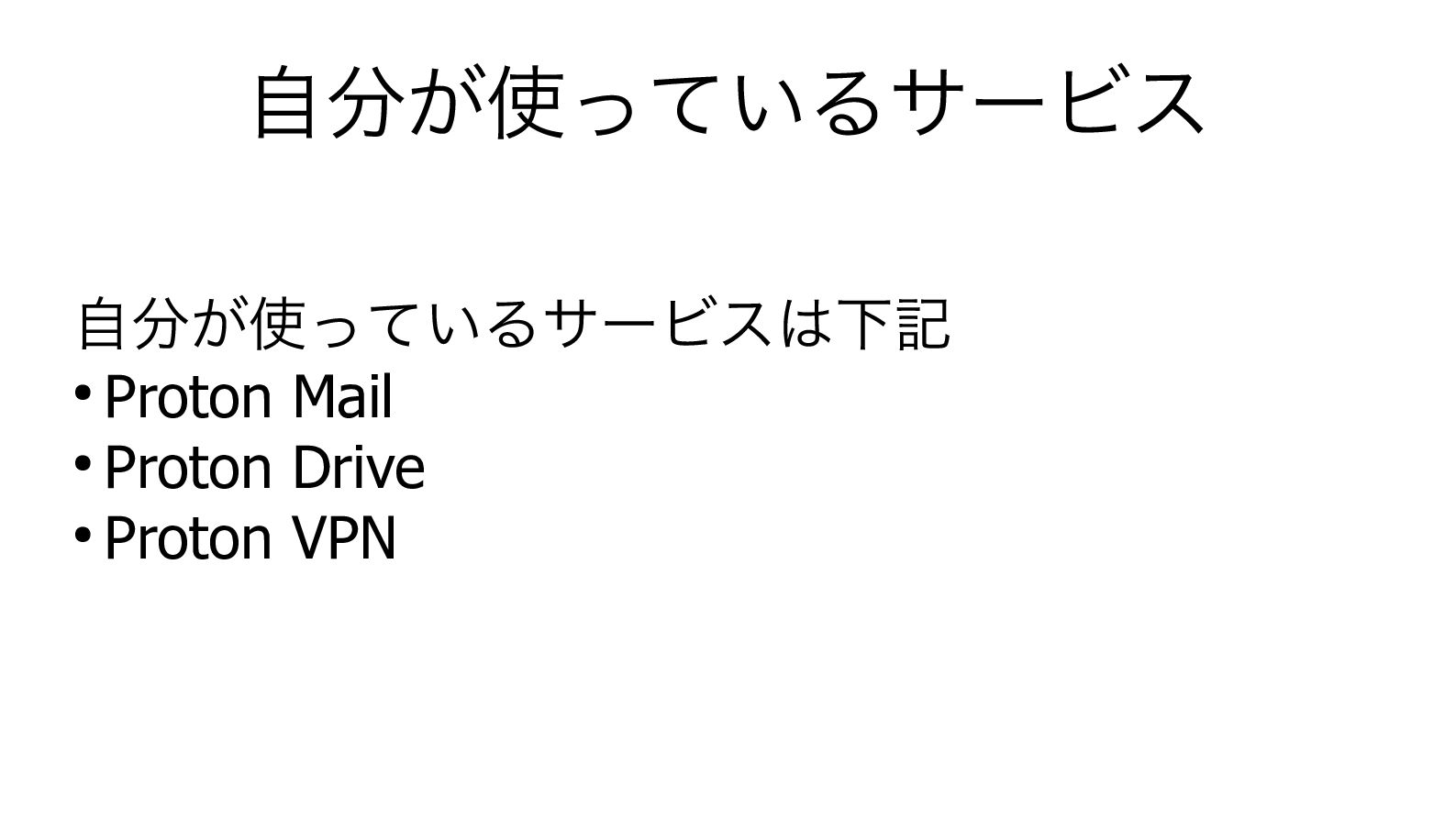 自分が使っているサービス 自分が使っているサービスは下記 • Proton Mail • Proton Drive • Proton